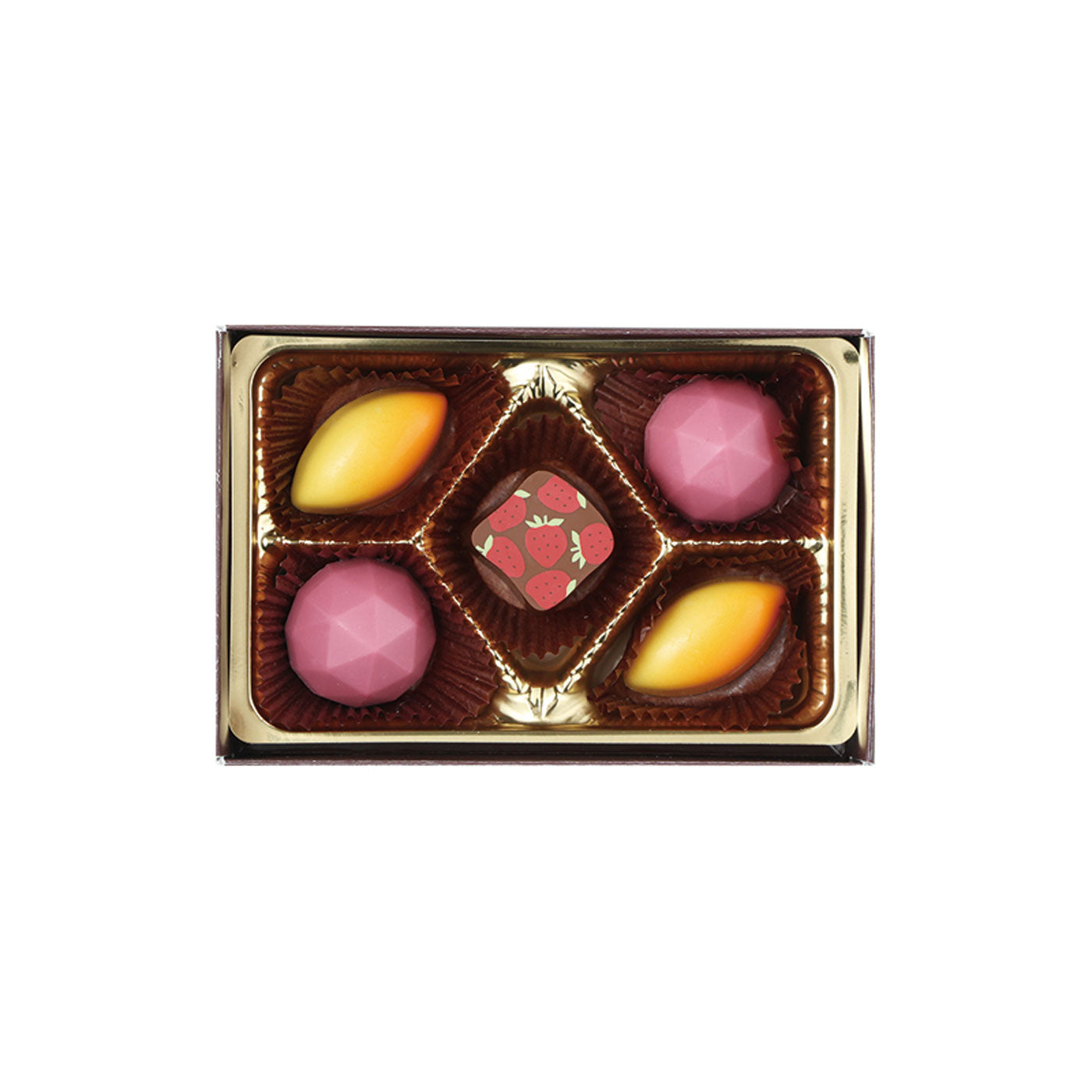 日本人の口に合うよう、ショコラの香りや苦み、口どけを追求したショコラに、ナッツやフルーツなどをトッピング。