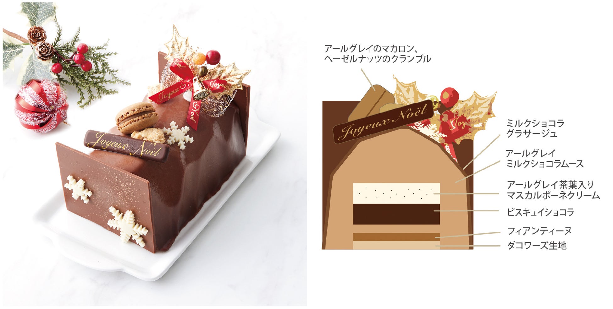 アールグレイのミルクショコラムースをベースに、茶葉入りマスカルポーネクリームやサクサク食感のフィアンティーヌを合わせました。