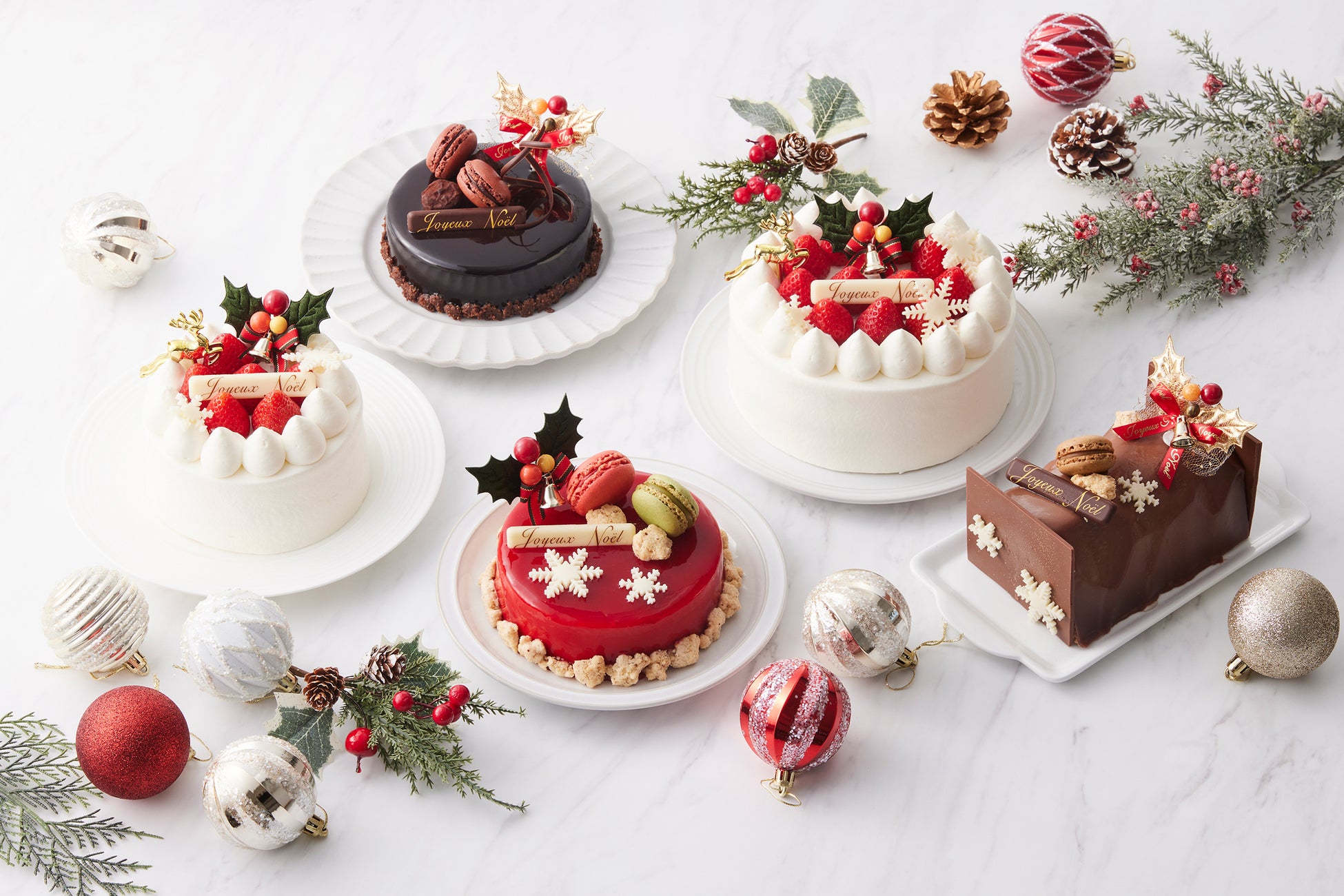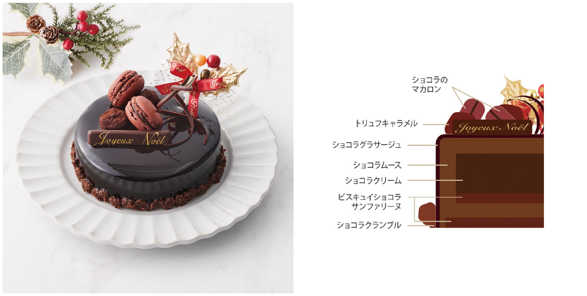 クリスマス仕様のショートケーキに、2種のチョコを掛け合わせたチョコレートケーキ、フランスでは定番のブッシュ ド ノエル、ベリー尽くしのフリュイルージュなど見た目も味わいもバラエティに富んだラインナップをご用意致します。