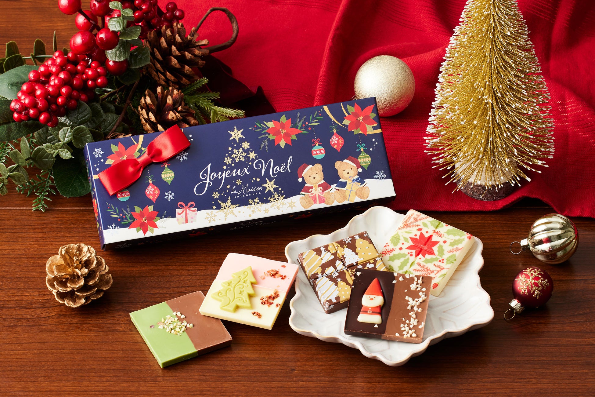 タブレットショコラ、トリュフ、ストロベリーショコラとタルトなどを詰め合わせたクリスマス限定のアソートギフト。