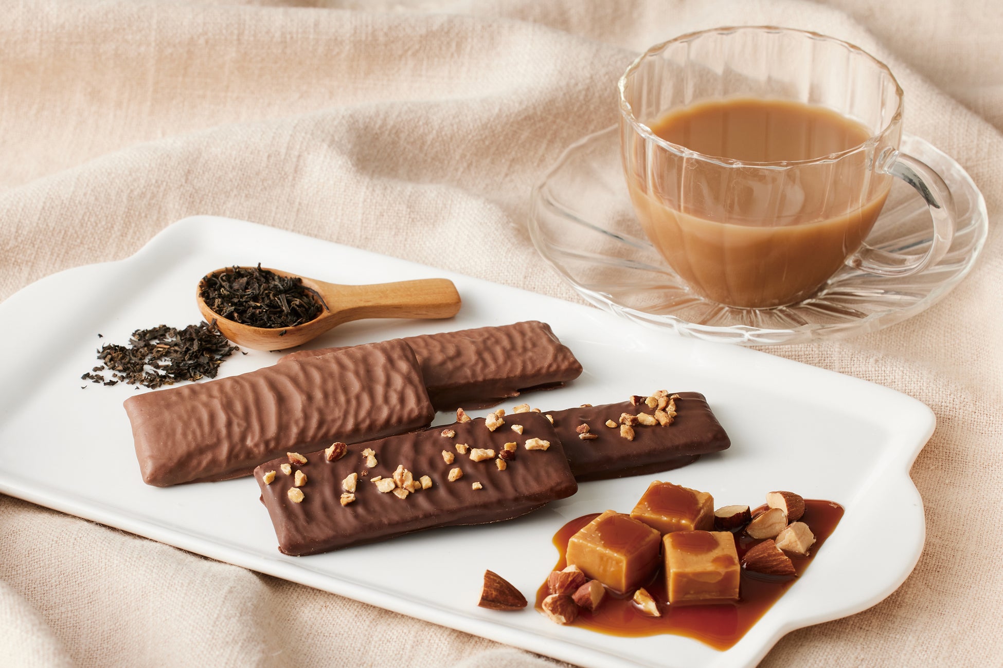 Flavor ◆キャラメルナッツ キャラメル風味のショコラとクレープ生地を折り重ねてショコラでコーティング ◆ミルクティー 紅茶風味のショコラとクレープ生地を折り重ねてショコラでコーティング |