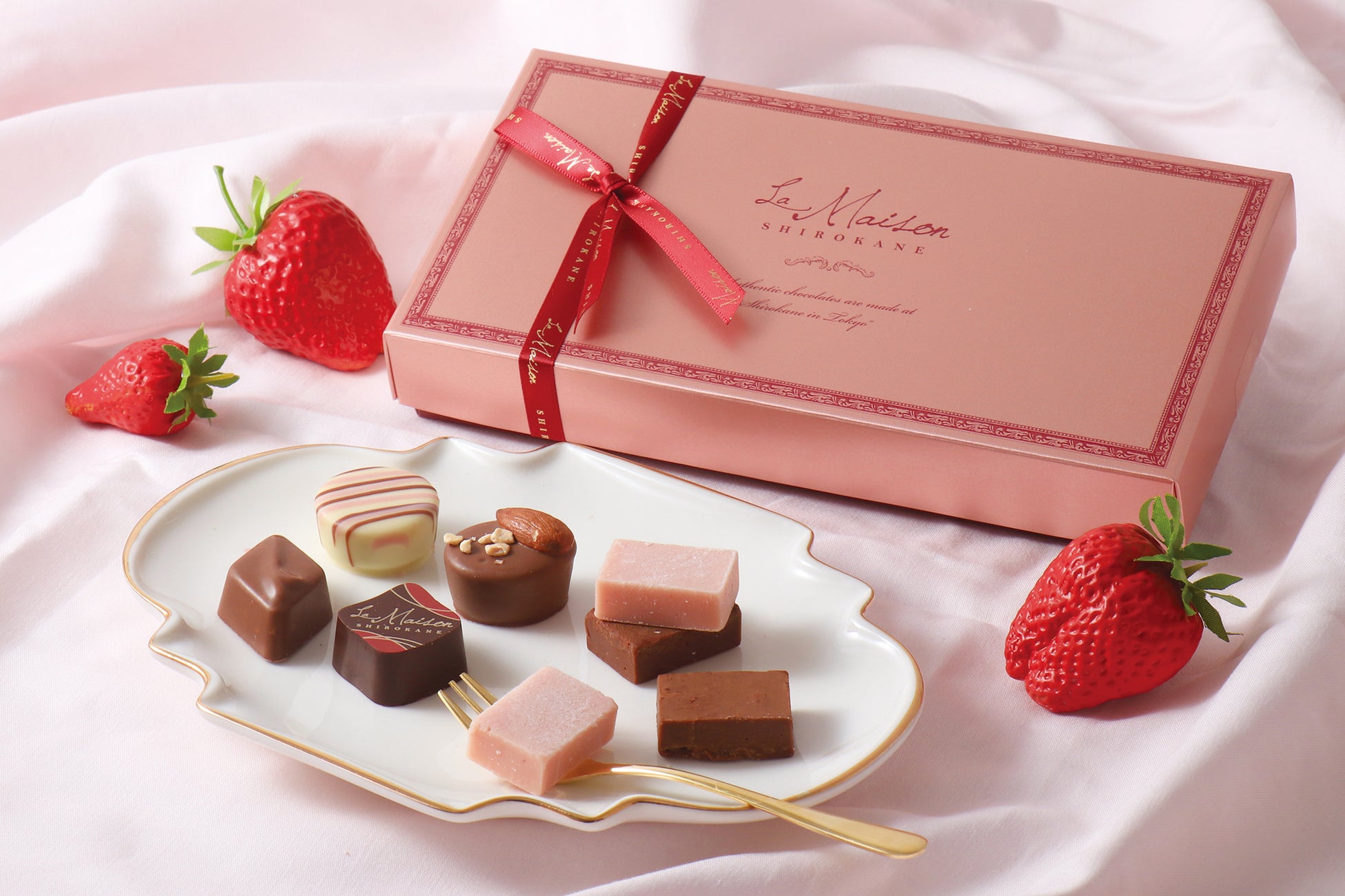 「あまおう苺」を使用した生チョコレートとミニサイズの板チョコレート、白金ショコラを詰め合わせたアソートギフト。