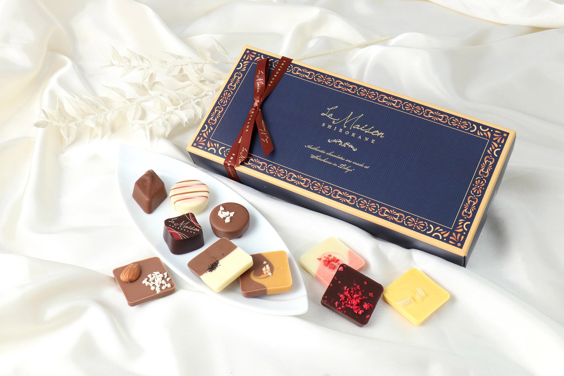ショコラの味わいを楽しめるビターガナッシュやコクのあるピスタチオ風味のガナッシュ、甘酸っぱいストロベリーのホワイトガナッシュなど、一箱で様々なフレーバーをご堪能いただけます。