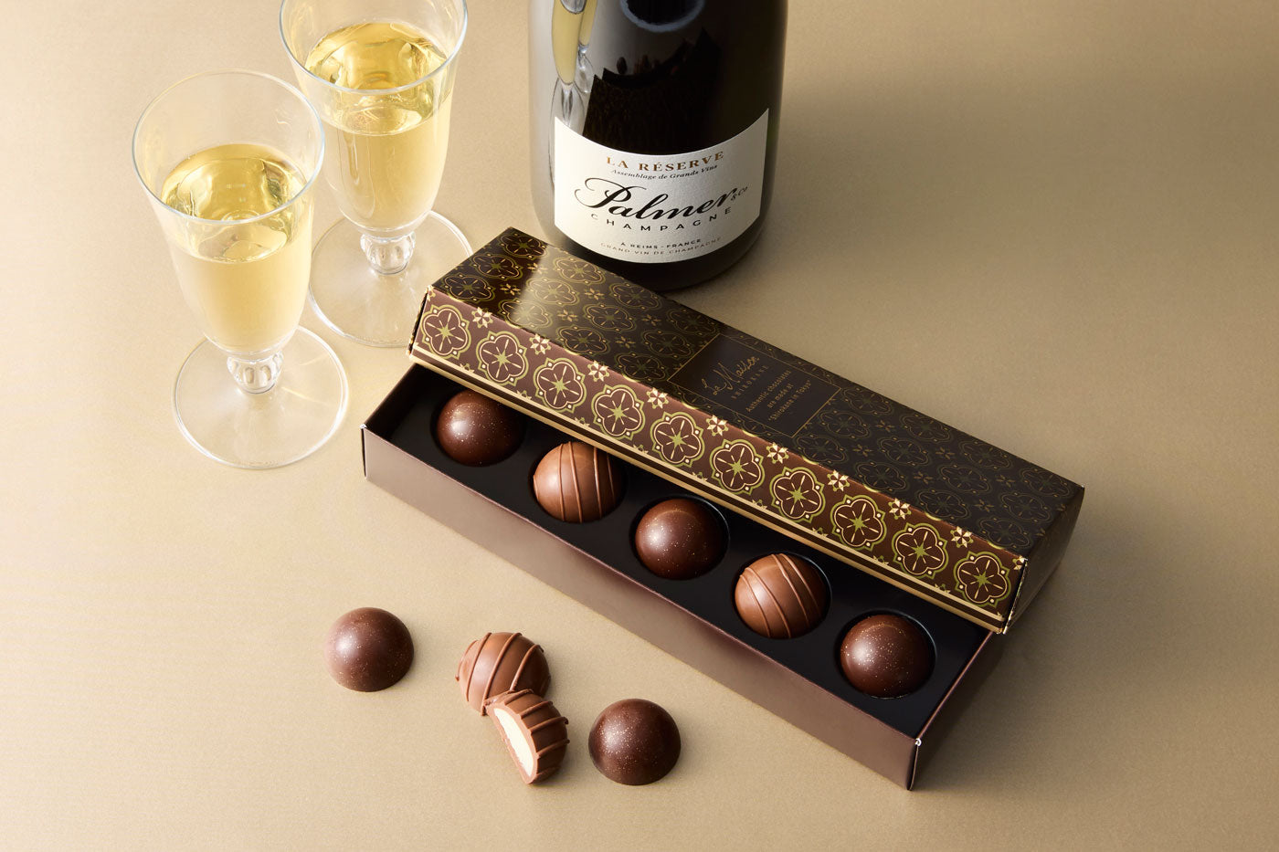 世界に認められたシャンパーニュ「パルメ ラ・レゼルヴ」を使用した、くちどけなめらかなクリーム入りのトリュフ。