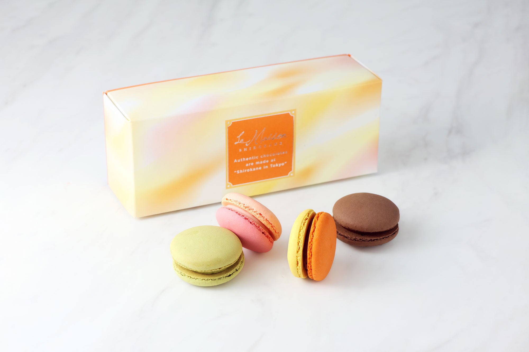ショコラやキャラメル、ストロベリーなどのガナッシュをサンドした、様々なフレーバーを楽しめるマカロン